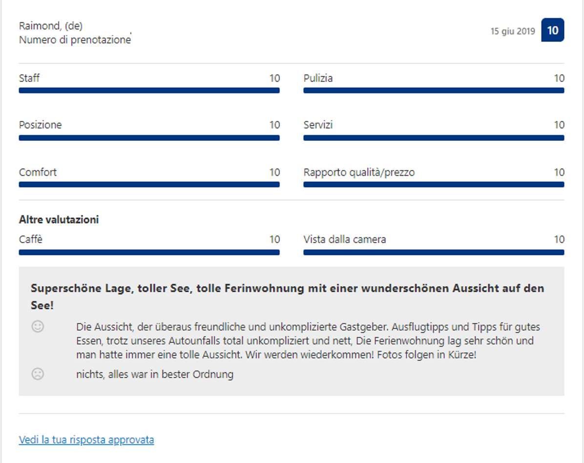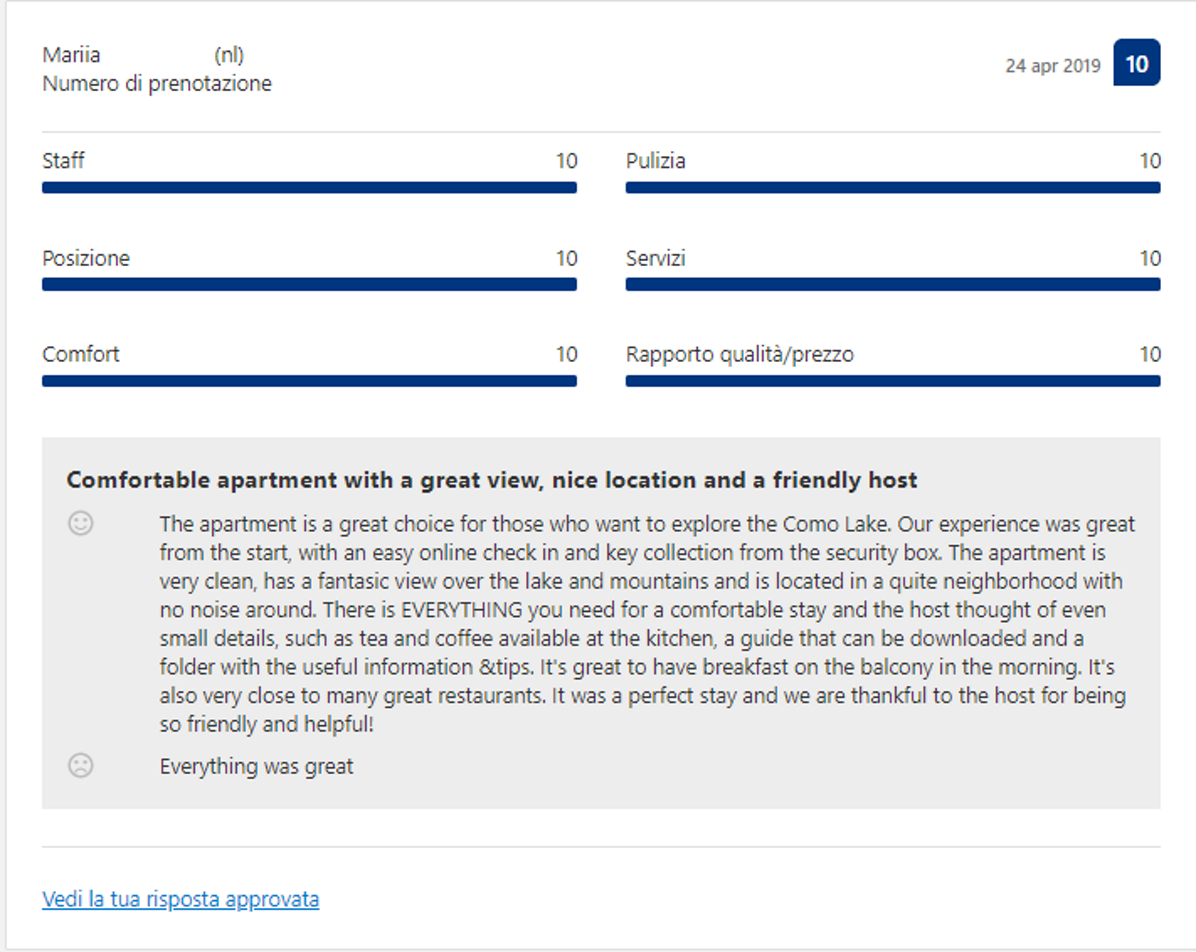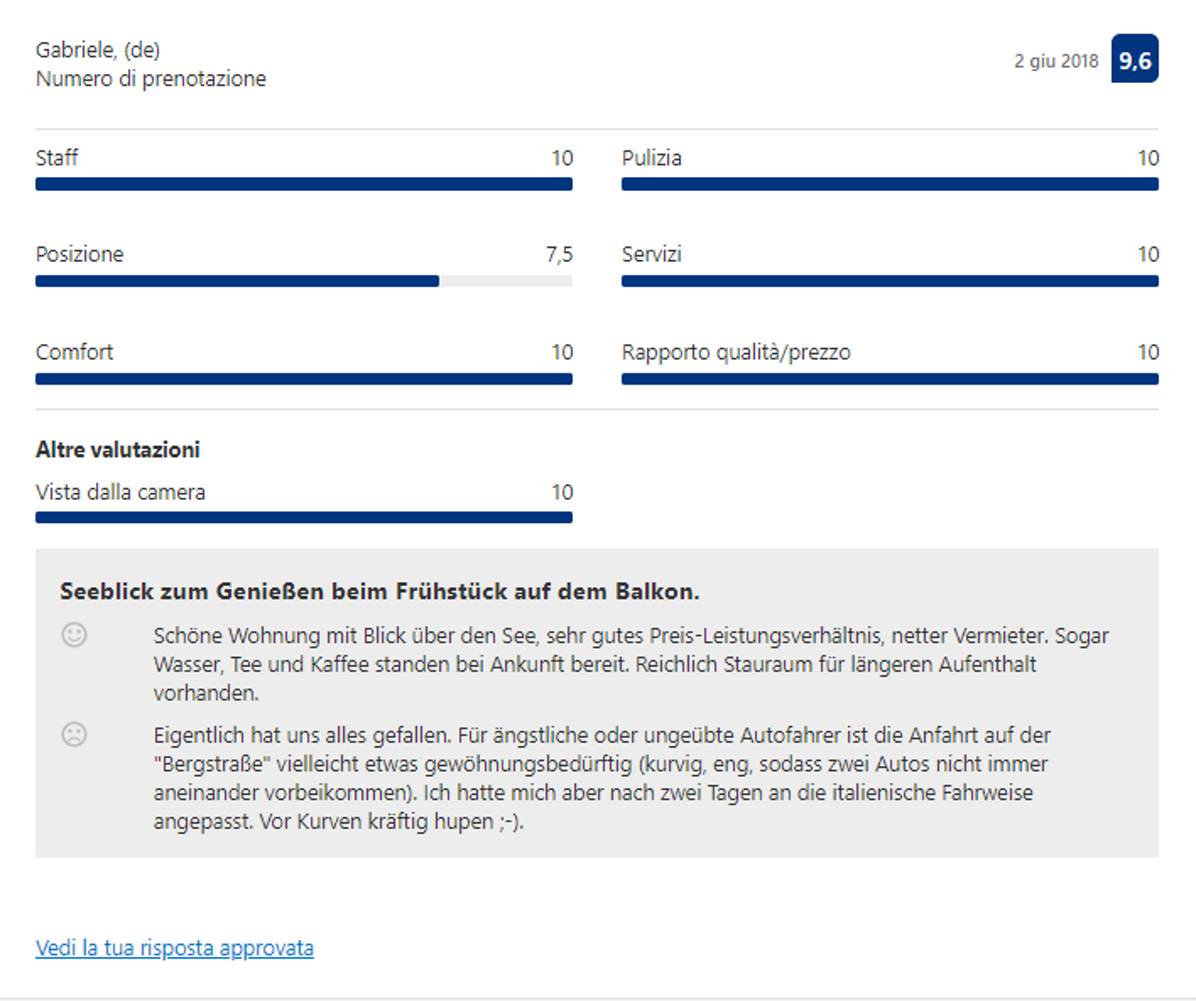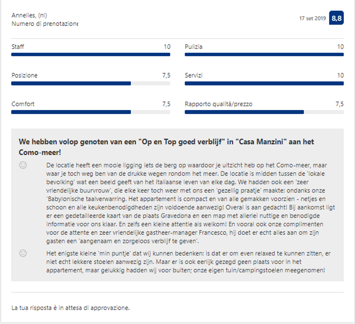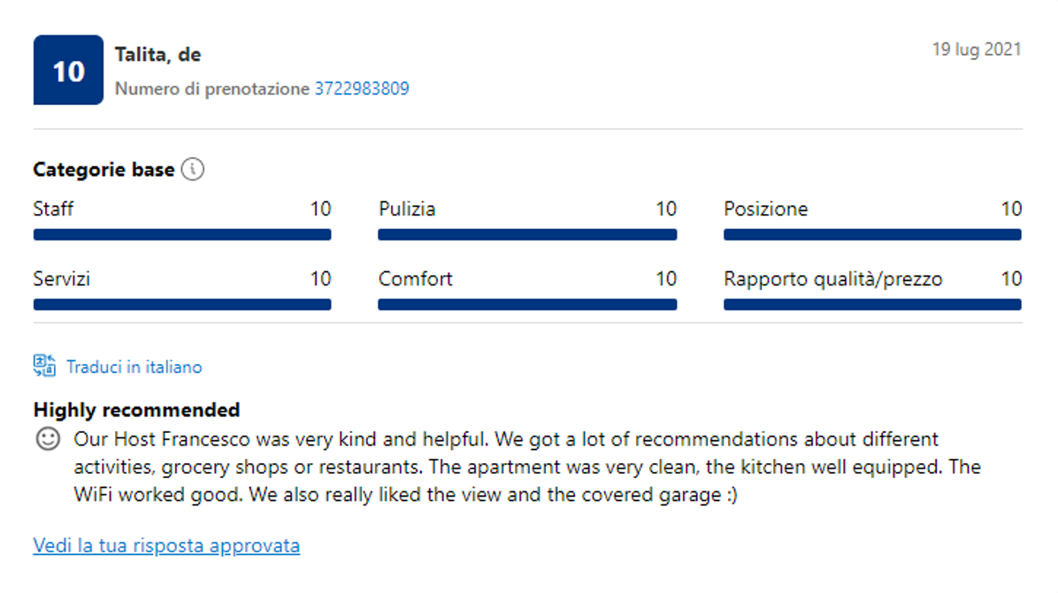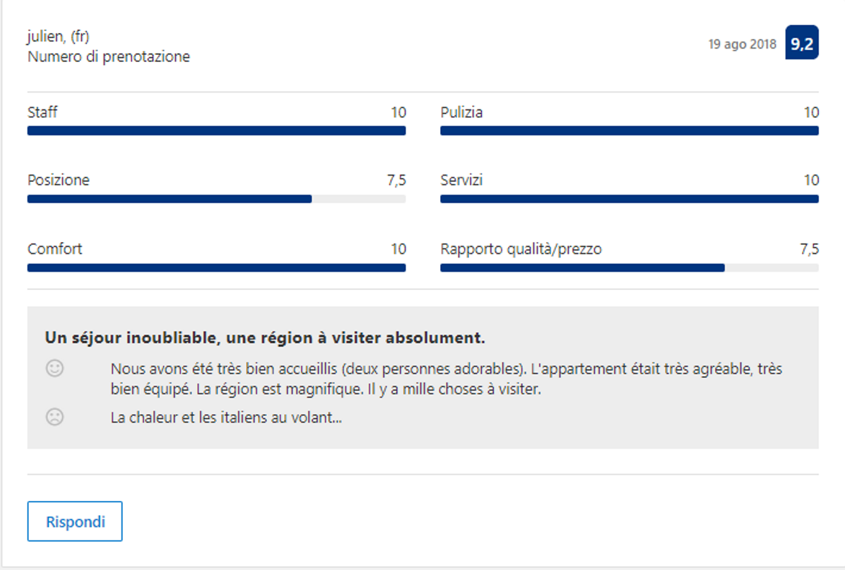 Effettivamente non devi credere ad una sola parola di quello che io ho scritto finora: ti basterà leggere le recensioni dei nostri Ospiti, che confermano la loro esperienza eccezionale con il 98,8% di recensioni positive.