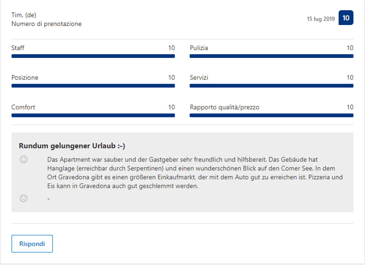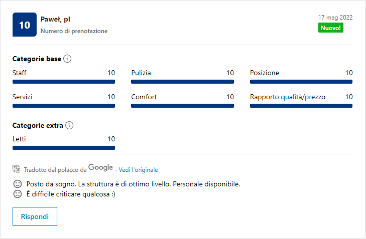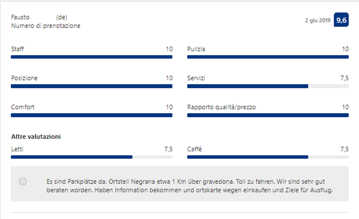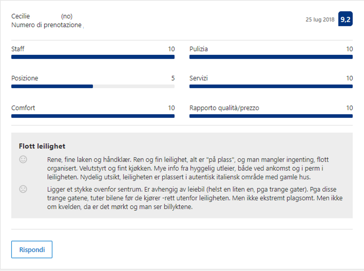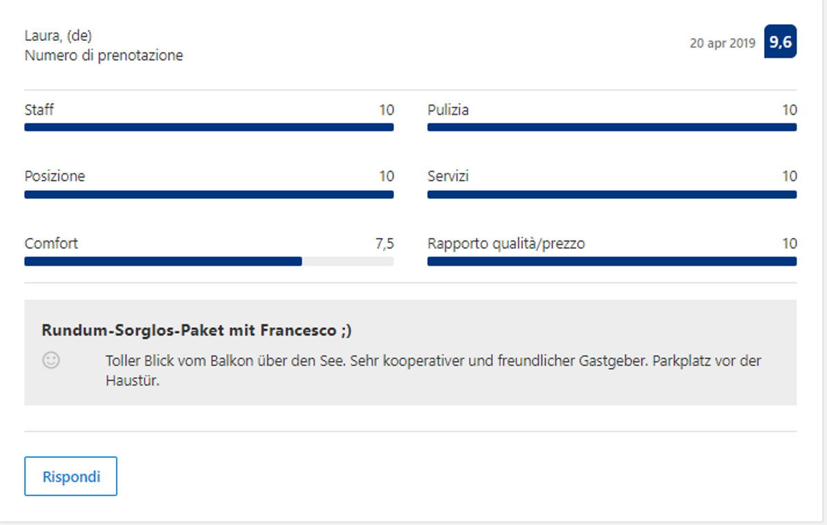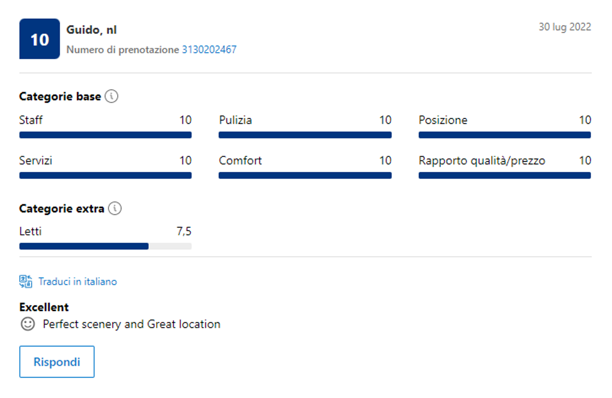 Effettivamente non devi credere ad una sola parola di quello che io ho scritto finora: ti basterà leggere le recensioni dei nostri Ospiti, che confermano la loro esperienza eccezionale con il 98,8% di recensioni positive.