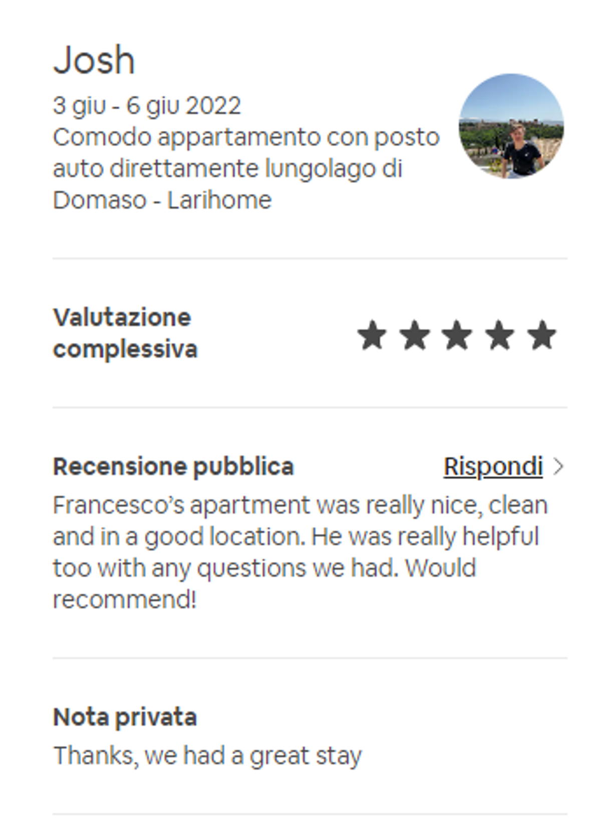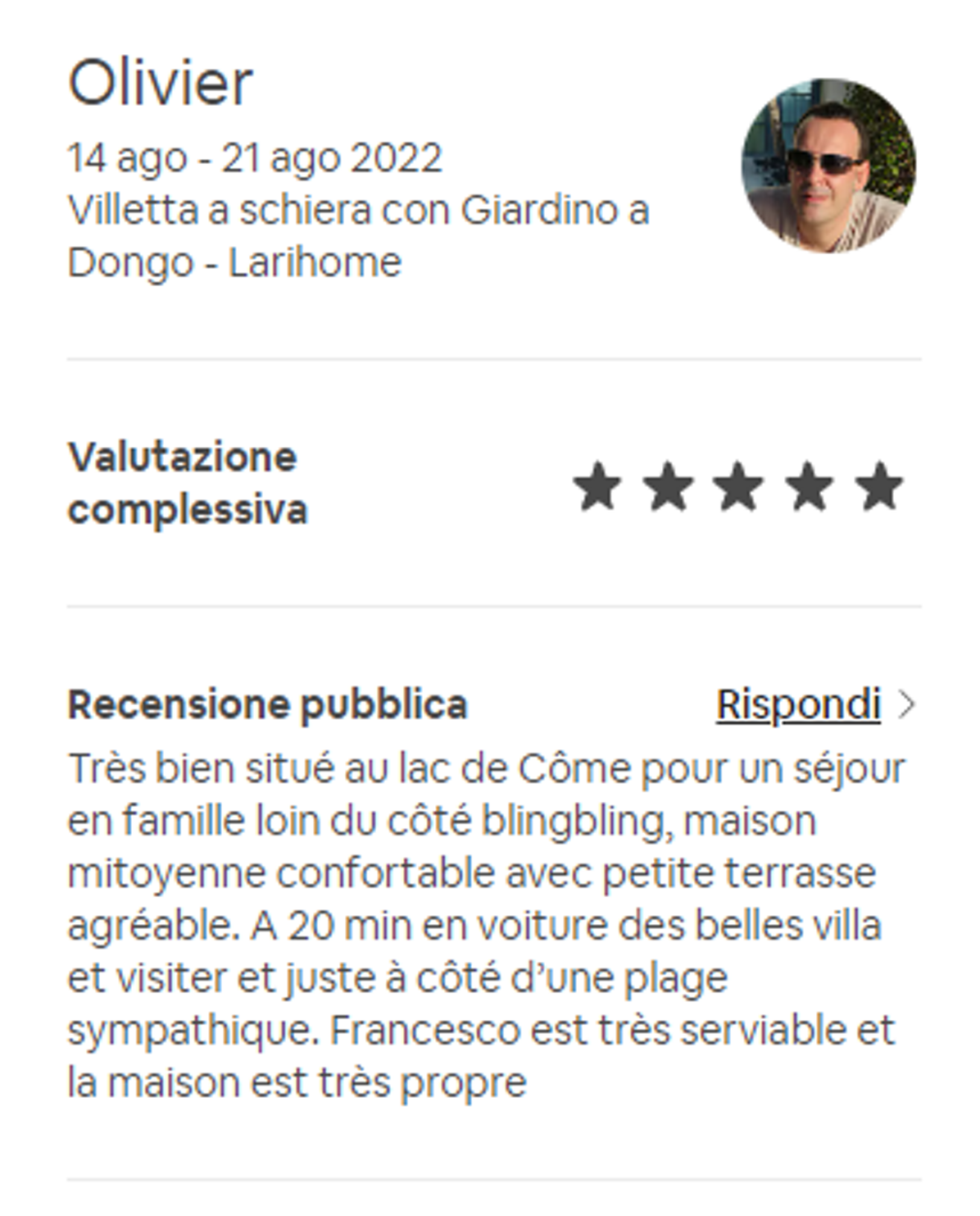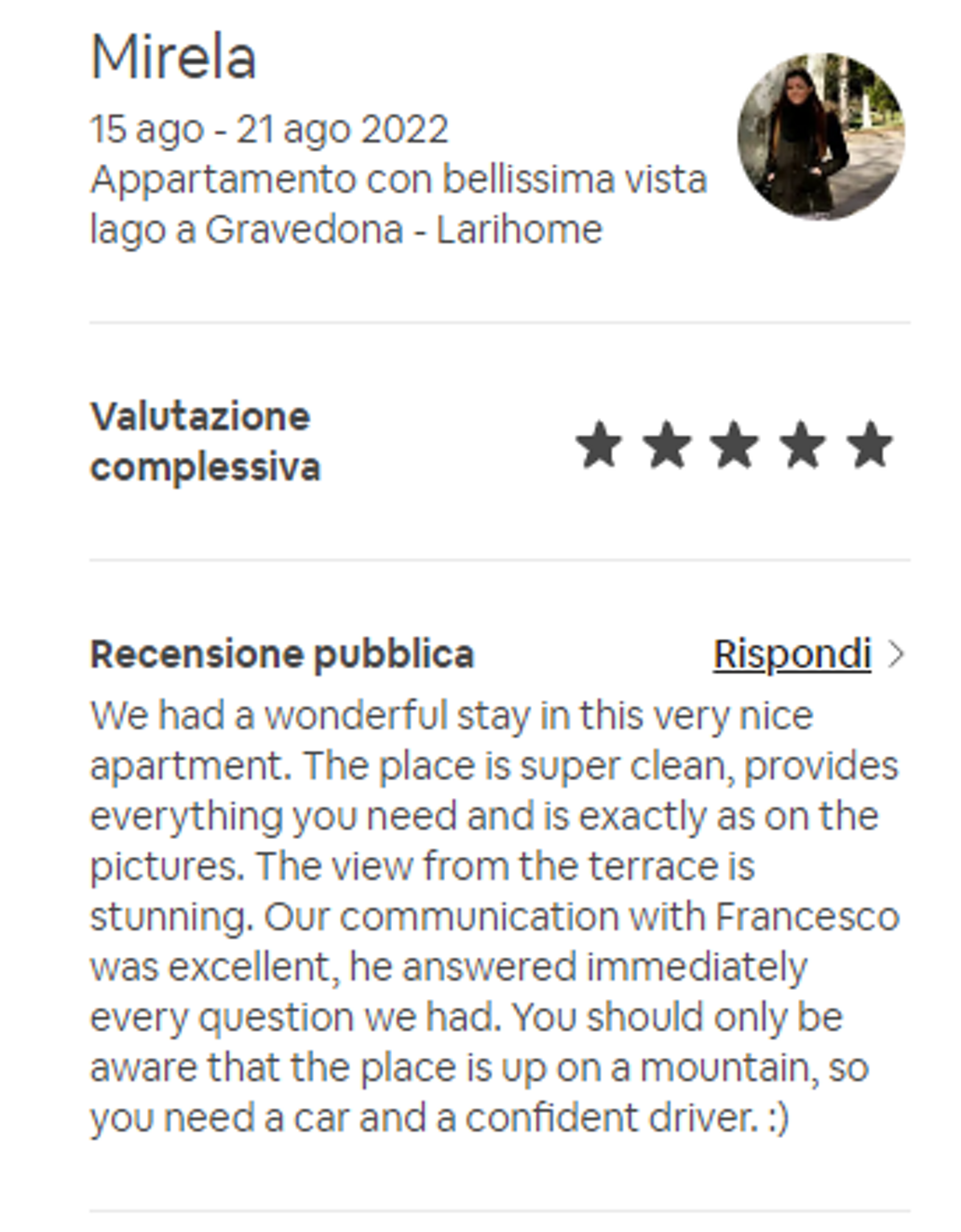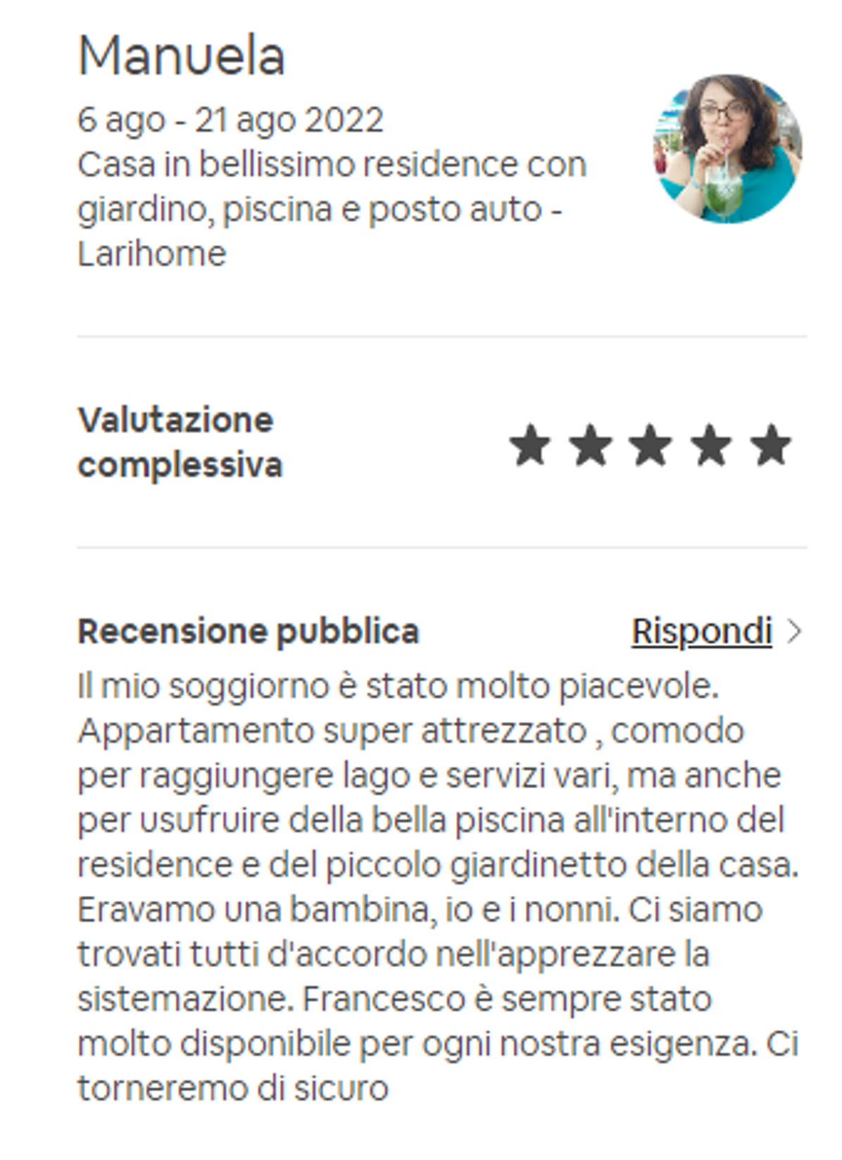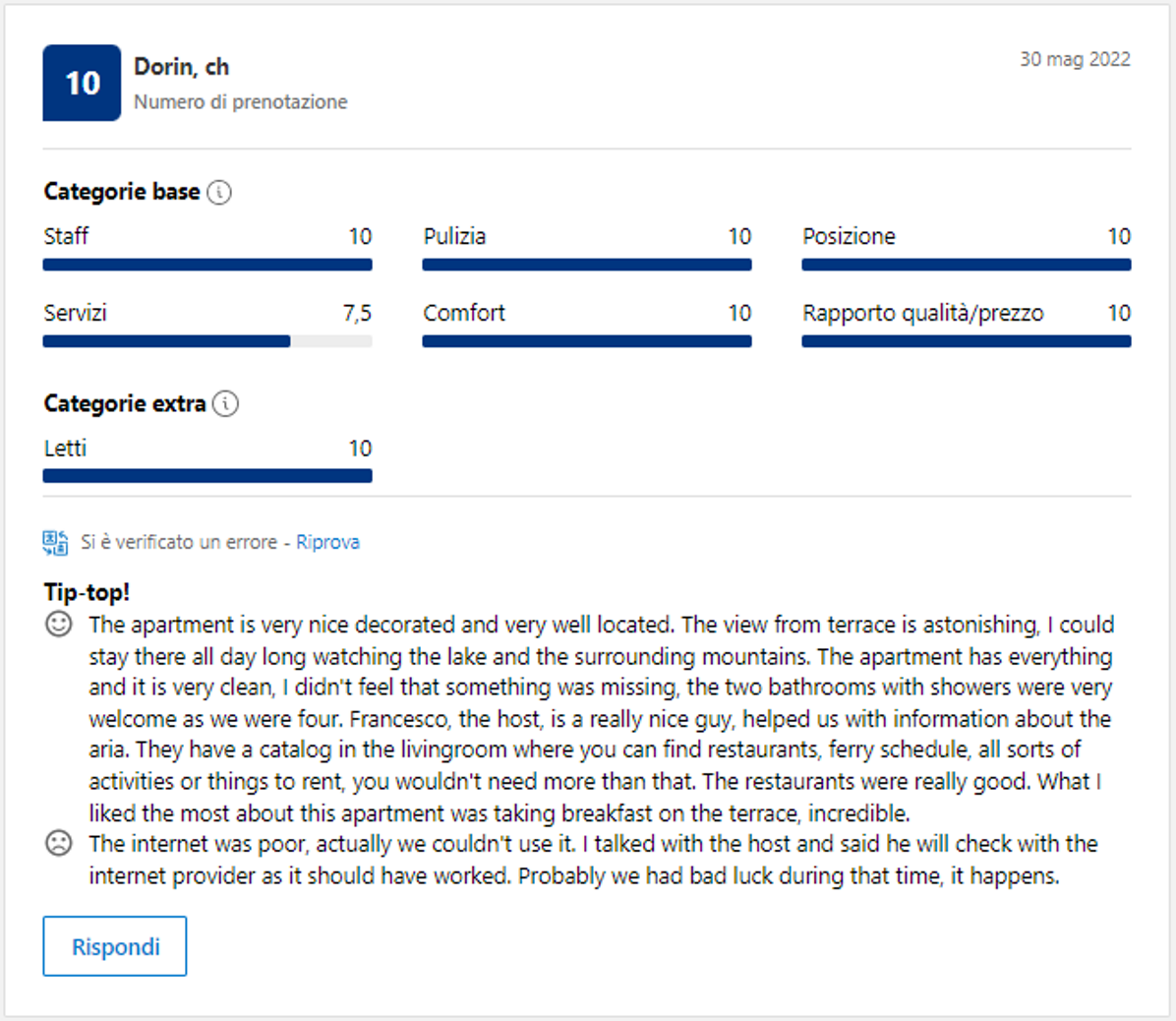 Effettivamente non devi credere ad una sola parola di quello che io ho scritto finora: ti basterà leggere le recensioni dei nostri Ospiti, che confermano la loro esperienza eccezionale con il 98,8% di recensioni positive.